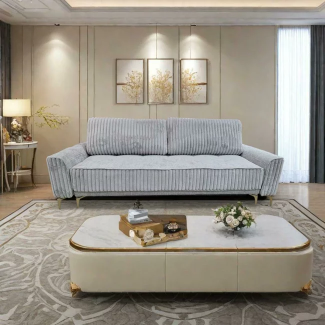 Canapeaua Baroc este o canapea extensibila si poate avea ca si accesorii suplimentar tetiera cap, care poate fi mutata in spatele oricarei perini, pentru un confort sporit, perinite patrate si perne tub .