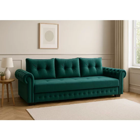Canapea Extensibilă Erika, ladă depozitare, arcuri bonell, tapițerie catifea baby face, structură lemn + PAL, 240x110x80 cm, Culoare personalizată