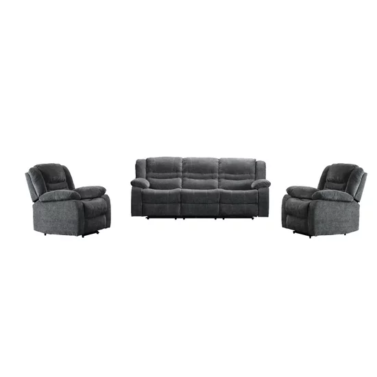 Set canapea recliner Relax 3+1+1, canapea și două fotolii cu funcție de relaxare, tapițerie catifelată, gri