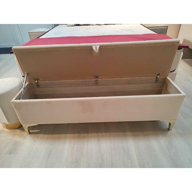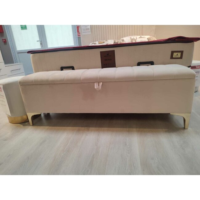 Bancă cu ladă de depozitare Bari, catifea premium, 140x35x45 cm, BEJ