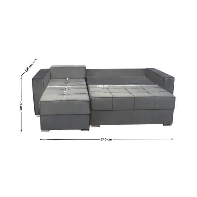 Colțar Claudia XXS Extensibil, design compact, sistem de extindere rapid, pat integrat 200x140 cm, tapițerie premium, 240x155 cm, Gri