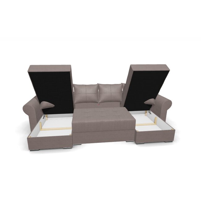 Colțarul Claudia U este extensibil, transformându-se cu ușurință într-un pat confortabil cu o suprafață de dormit de 352 cm lungime și 145 cm adâncime.