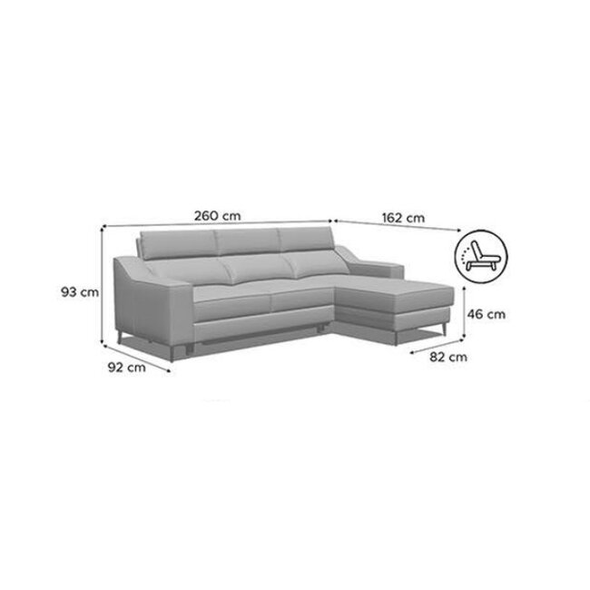 Coltar extensibil Malibu, design modern, tapițerie premium, 145/162/73 cm, culoare personalizată