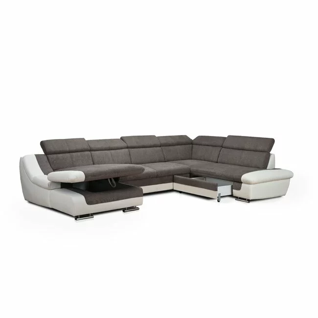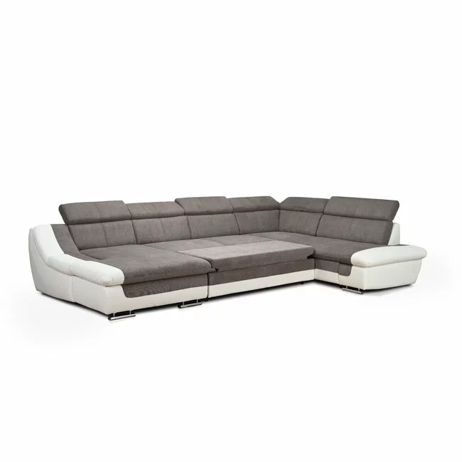 Colțar Helios U extensibil, spațiu generos, tetiere și brațe rabatabile, 381x250x177 cm, culoare personalizată