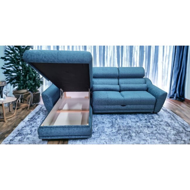 Conține 3 perne decorative mari și 2 mici Ladă de depozitare incorporată;