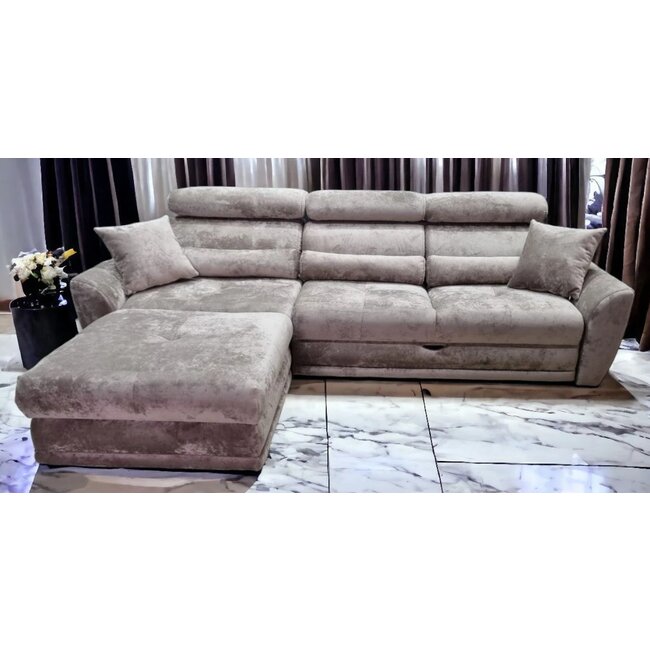 Colțar Monaco extensibil, ladă depozitare, stofă premium, 270x180 cm, Gri