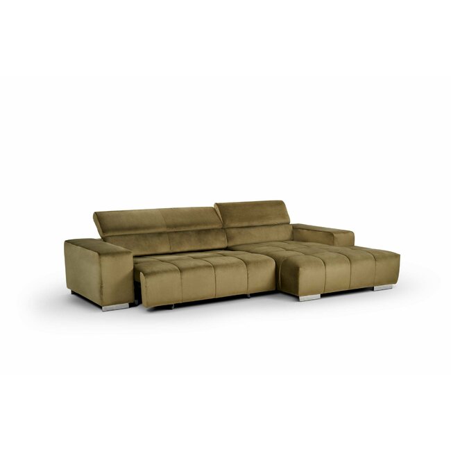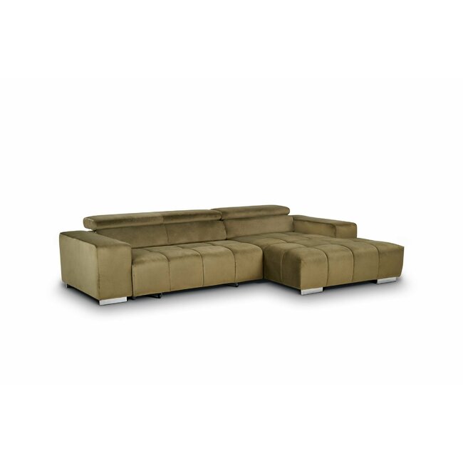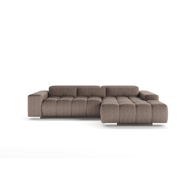 Colțar Olbia, design modern cu tetiere reglabile, tapițerie din stofă, 307x186 cm, culoare personalizată