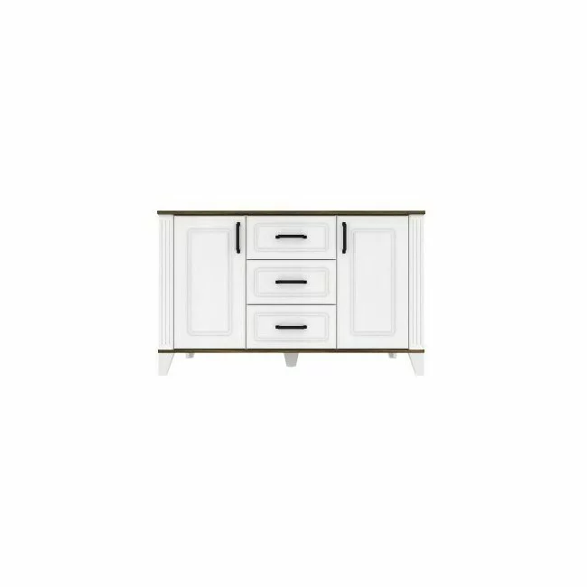Comodă Skandi 2D3S, fronturi MDF, PAL melaminat, 140x53x83.5 cm, alb și stejar Burbon