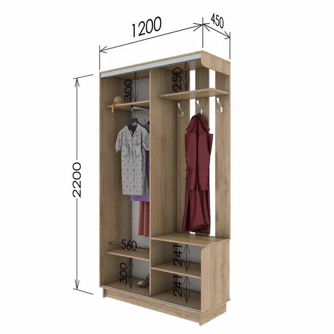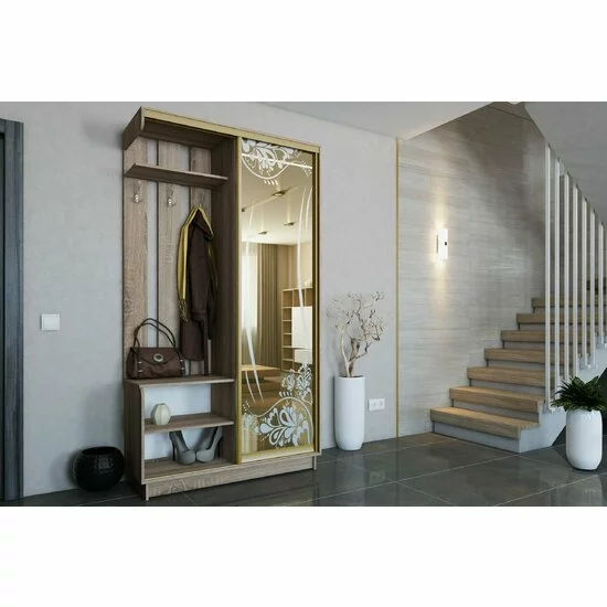 Cuier Alice, Cu Oglindă Sablata Fumurie Și Spații Depozitare, PAL, 220x120x45 cm, Gri