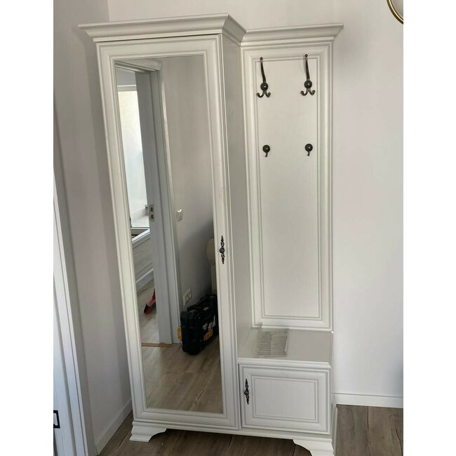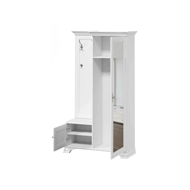 Cuier Idento cu oglindă 110 P/L, MDF și PAL, spațiu depozitare, 115.5x44x210 cm, alb alpin