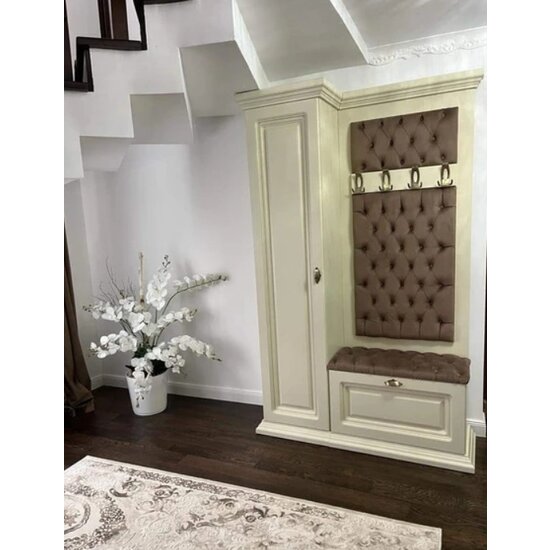 Cuier Tapitat Cristina, un dulap lateral, rafturi multiple, structură MDF, design personalizabil, 110x40x210 cm, Culoare personalizabilă