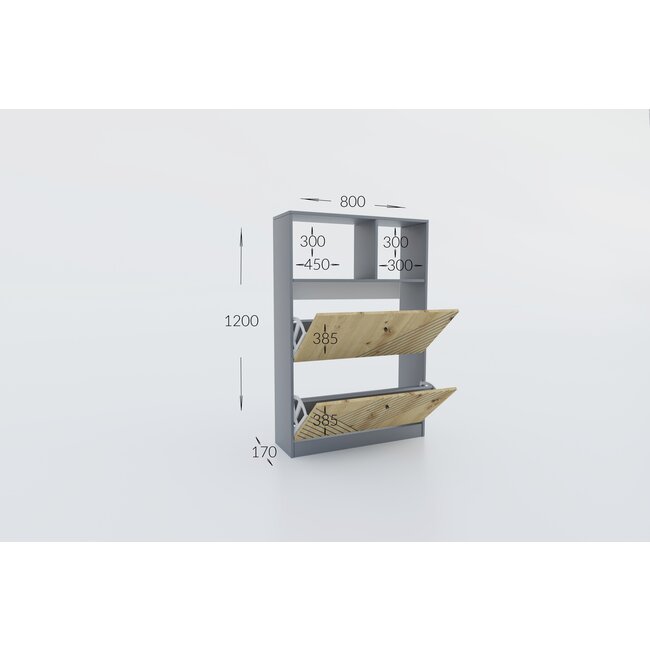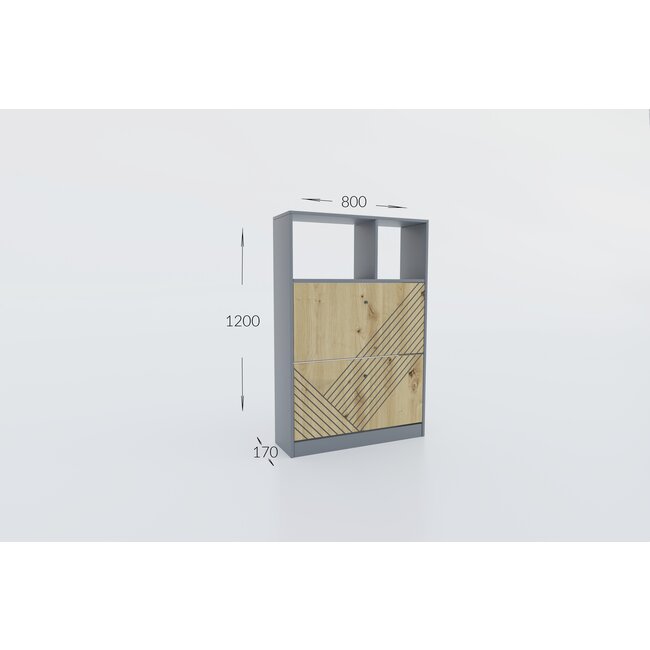 Pantofar Bristol 2D, 2 uși rabatabile, structură PAL melaminat, spațiu depozitare optim, 120x80x17 cm, Alb