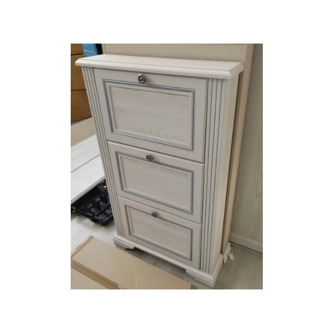 Pantofar White 3D, 3 compartimente, MDF și PAL melaminat, mânere metalice, 72.5x19x124 cm, frasin alb/pin argintiu