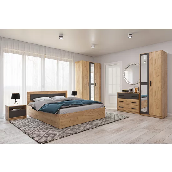 Dormitor Viva, set complet mobilier dormitor, dulap spațios, pat și noptiere incluse, structură PAL melaminat + MDF, 209x120x50 cm, Gold Craft