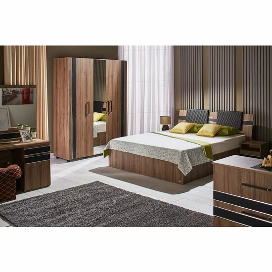 Setul include: Pat 160x200, dulap, 2 noptiere, comoda, masa de toaleta.