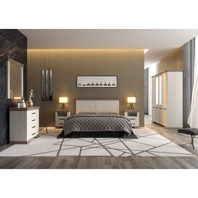 Setul include: Pat 160x200, Dulap 3 usi, 2 Noptiere