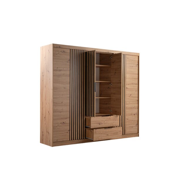 Dulap Majorka, usi culisante cu manere negre, PAL melaminat, 250x213x60 cm, Stejar Artizanal
