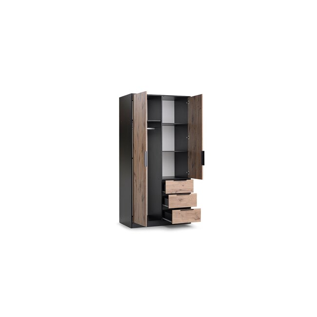 Dulap Lati D2 cu 2 uși, extensie superioară și finisaj elegant, 100x58x200 cm, negru