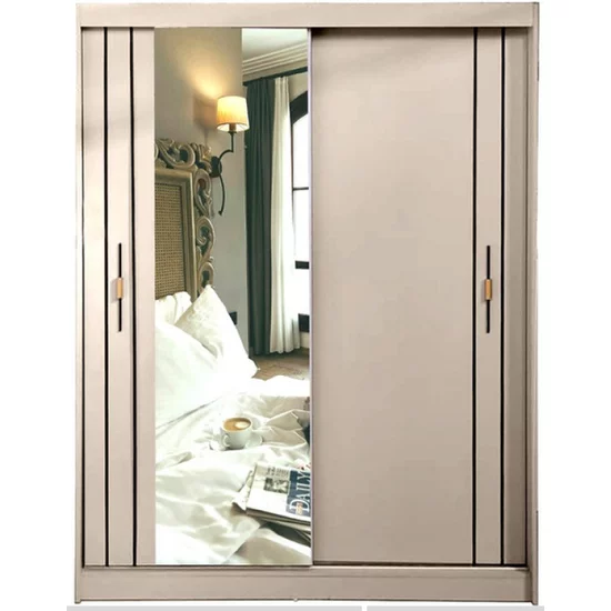 Acest dulap cu uși glisante se remarcă printr-un design rafinat și minimalist, fiind ideal pentru dormitoare amenajate în stil modern sau clasic-elegant. Aspectul său luminos și finisajul deschis la culoare contribuie la crearea unei atmosfere aerisite și ordonate.