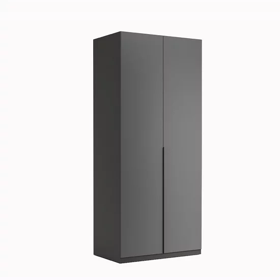 Dulap Teo cu 2 uși, design minimalist, spațiu bine compartimentat, material PAL și MDF, 210x89.6x55 cm, gri