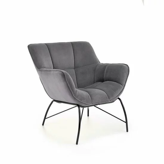 Fotoliu Belton, tapițat cu catifea și structură metalică, 74x73x78 cm, gri