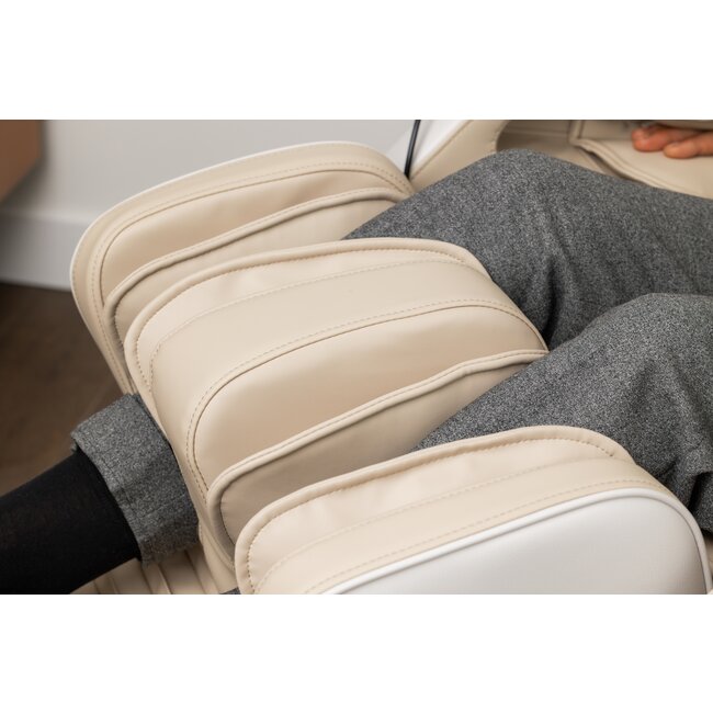 Lasati-va rasfatati cu un masaj placut cu aer comprimat. Masajul foloseste miscari precise urmand liniile arcului piciorului si ameliorand tensiunea. Partile laterale ale picioarelor sunt masate viguros cu celule de aer cu doua straturi, special concepute. Combinat cu masajul variabil al gambei, veti simti imediat cum oboseala si greutatea va vor parasi picioarele.