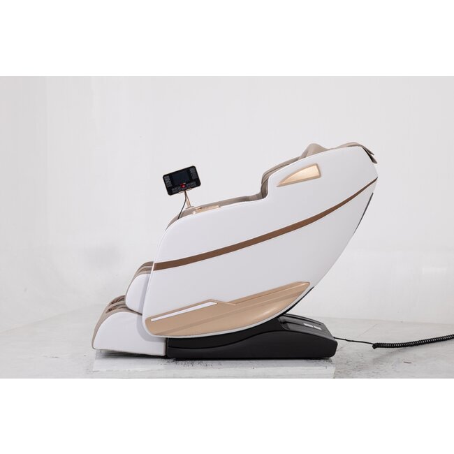 Fotoliu masaj gravitație zero alb, funcție încălzire, bluetooth, role picioare, airbag complet