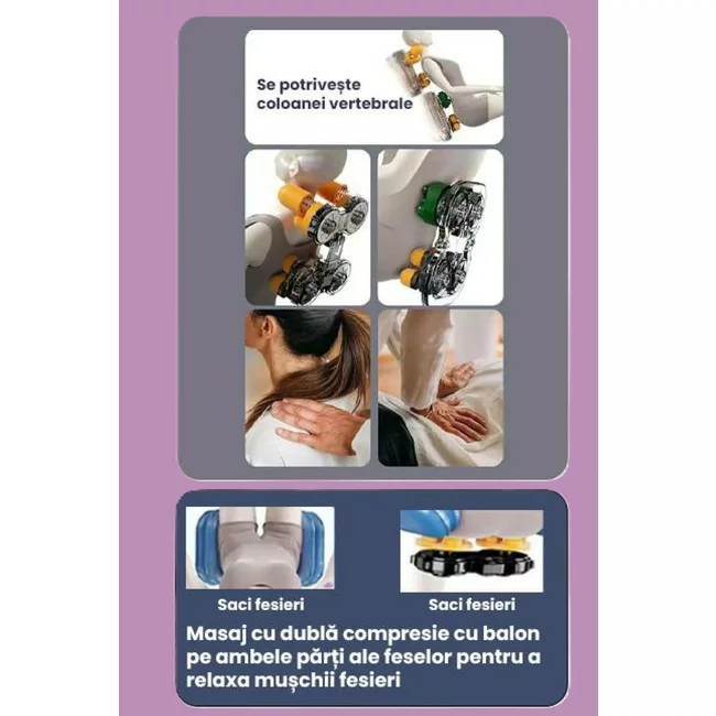 Cu diferite programe presetate si masaj cu perne pe aer sau cu incalzire