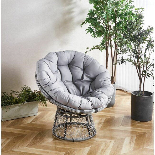 Fotoliu Puffy rotativ, cadru metalic galvanizat, împletitură rattan, pernă din poliester, 75x69x48 cm, gri