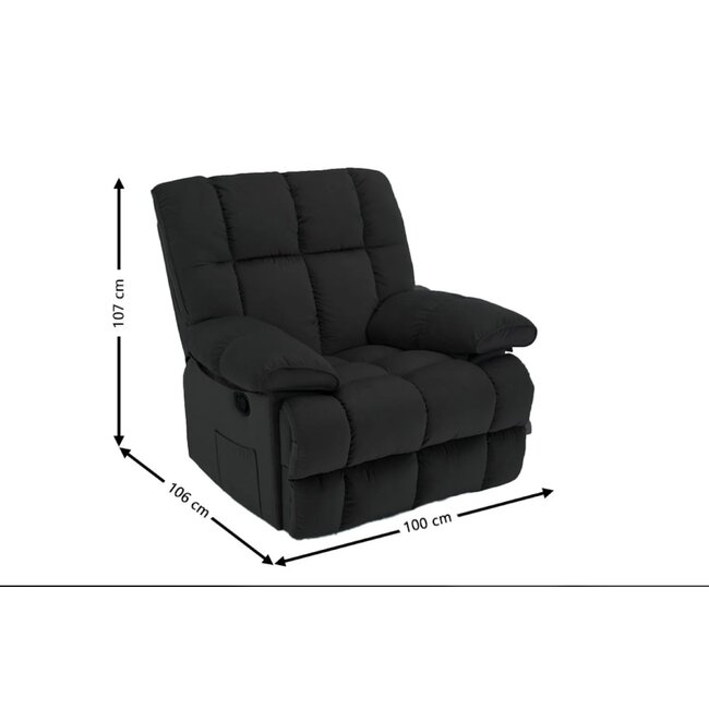 Fotoliu Recliner Relax, funcție rabatabilă, suport picioare integrat, tapițerie textilă premium, 100x106x107 cm, Negru