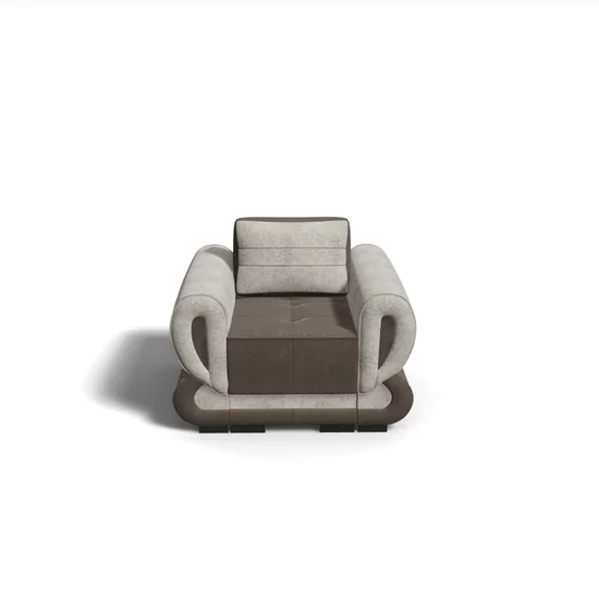 Fotoliu Sofia se remarca prin tapițerie pe saltea din spuma poliuretanică si stofa, perne decorative realizate din stofa si vata siliconica 100% virgina de tip SuperBall.