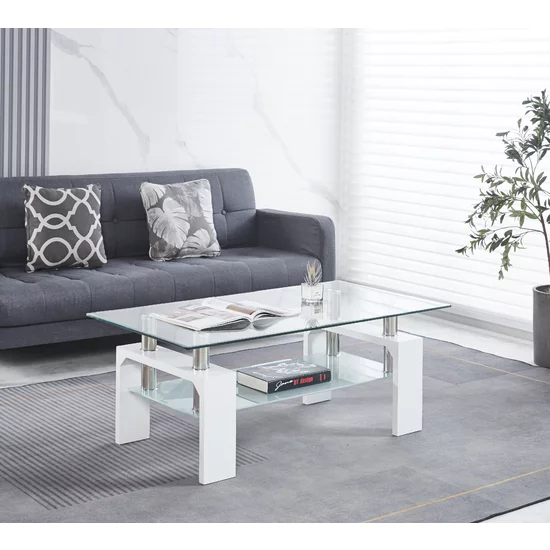 Măsuță de cafea Dalila, blat din sticlă securizată și cadru MDF, design modern, 110x60x45 cm, alb