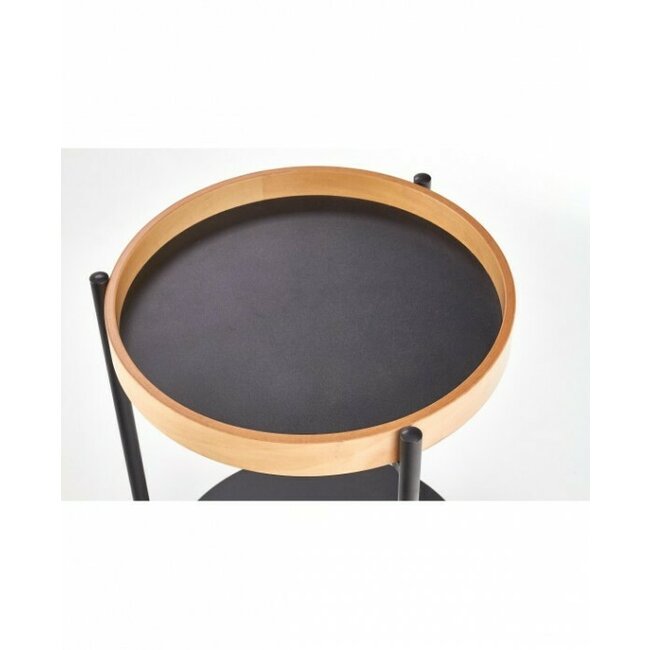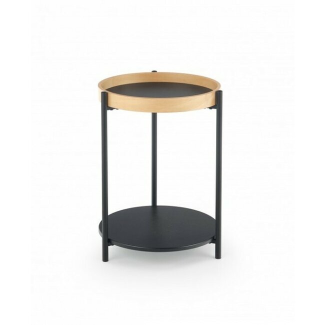 Măsuță cafea Rolo rotundă, design elegant, PAL melaminat și metal, 44x55 cm, stejar/negru