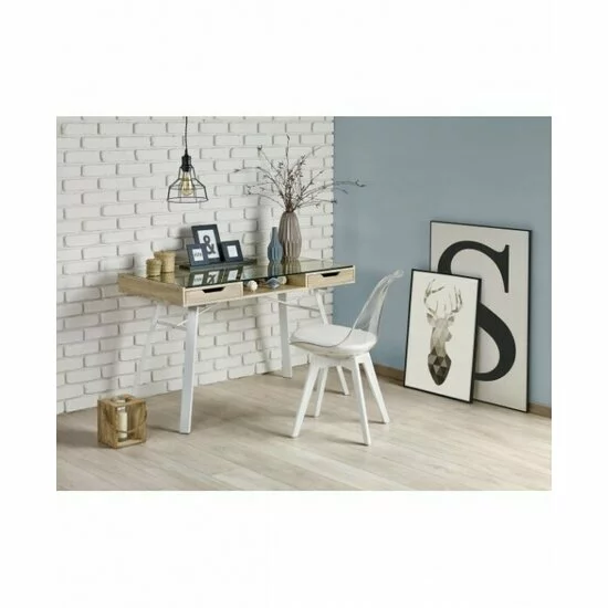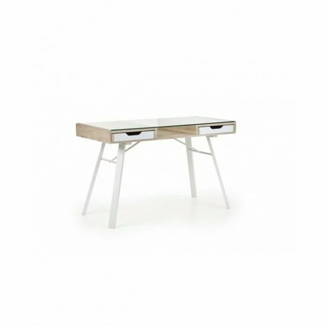 Birou B33, stejar Sonoma și alb 120/60/75 cm cu blat din sticlă mată