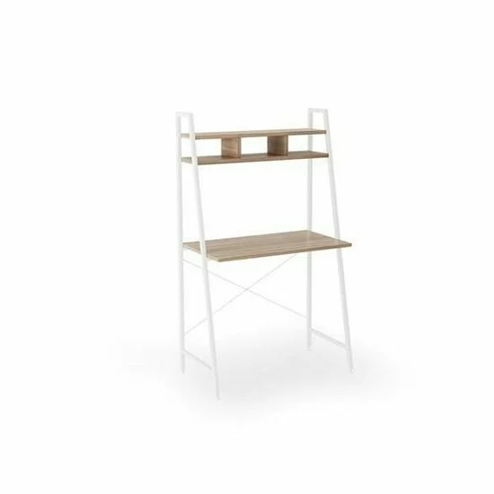 Masă birou Navrik B2 Byaly, cu etajere, PAL melaminat, 142x84x46 cm, alb