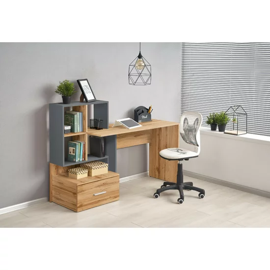 Masă de birou Grosso, design funcțional cu rafturi și sertare, PAL melaminat, 149x50x105 cm, gri