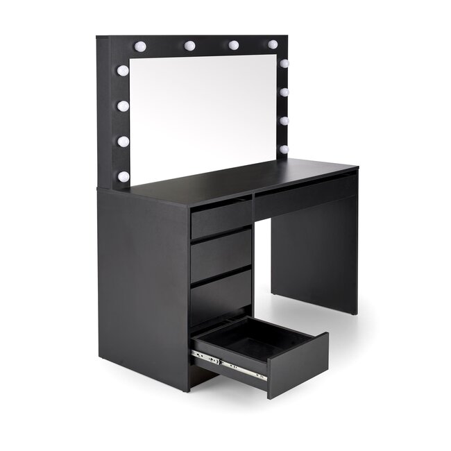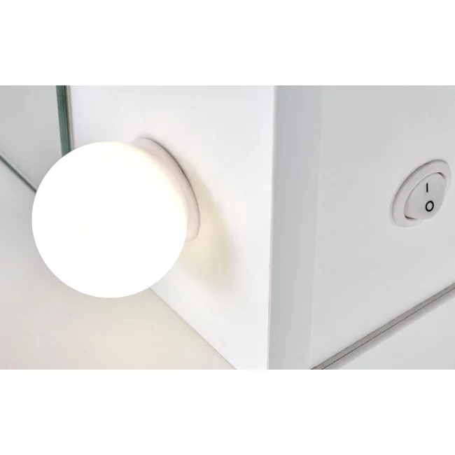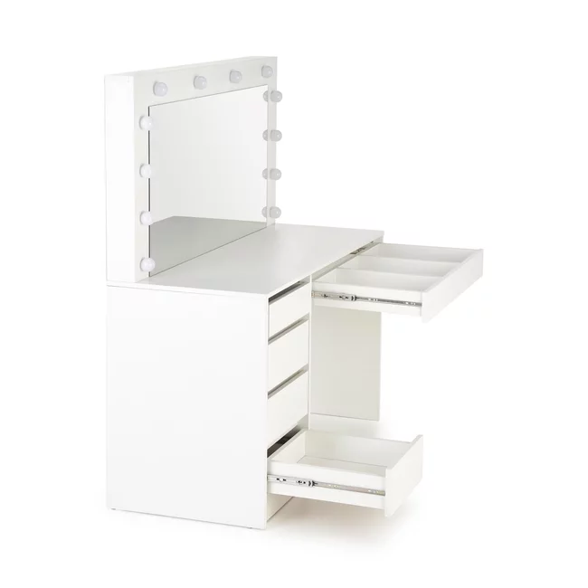 Masă toaletă Hollywood XL, structură PAL melaminat, sistem iluminat inclus, 120x55x140 cm, alb