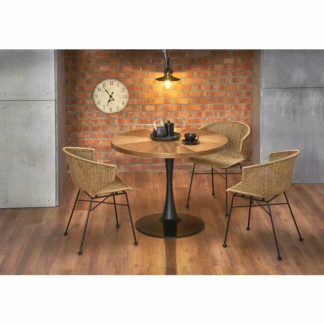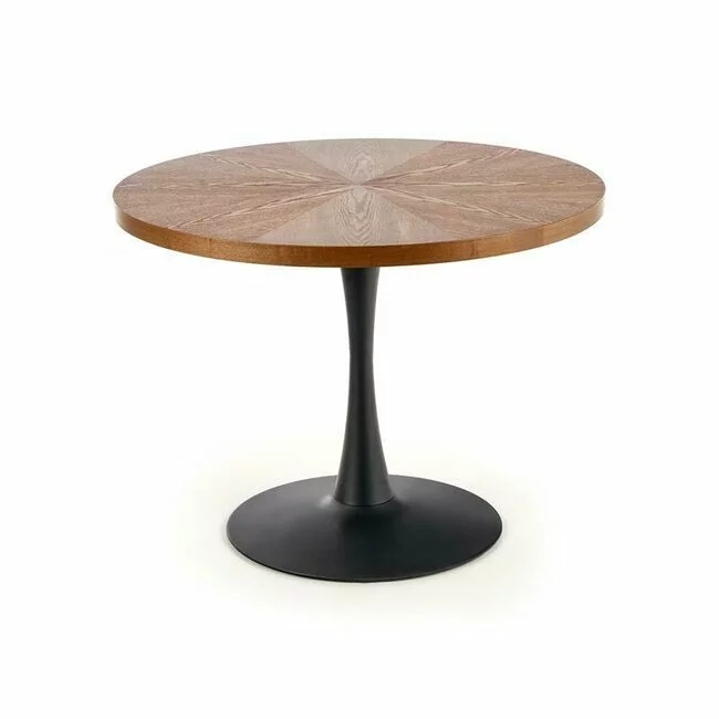 Masă Carmelo rotundă cu blat MDF furniruit și cadru metalic, 100x75 cm, nuc/negru