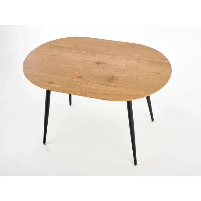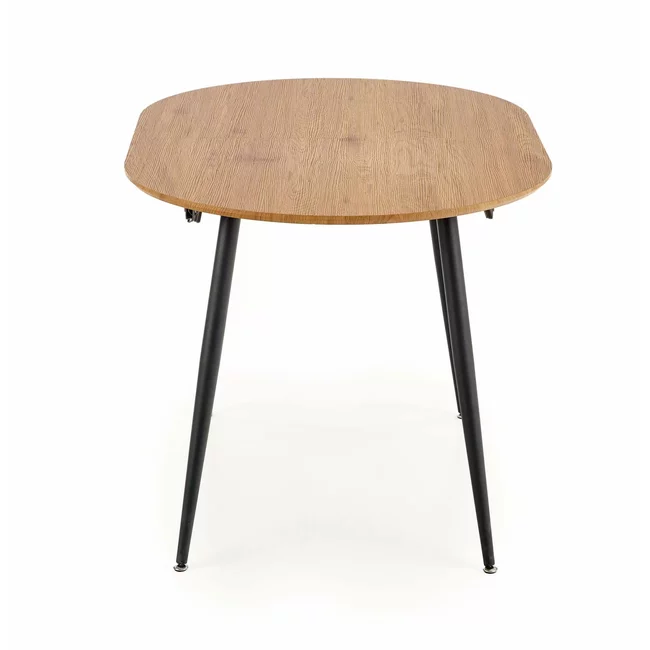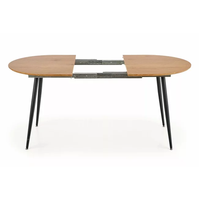 Masă Colorado extensibilă cu blat MDF furniruit și picioare metalice, 120-160x80x74 cm, stejar/negru