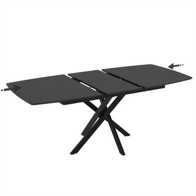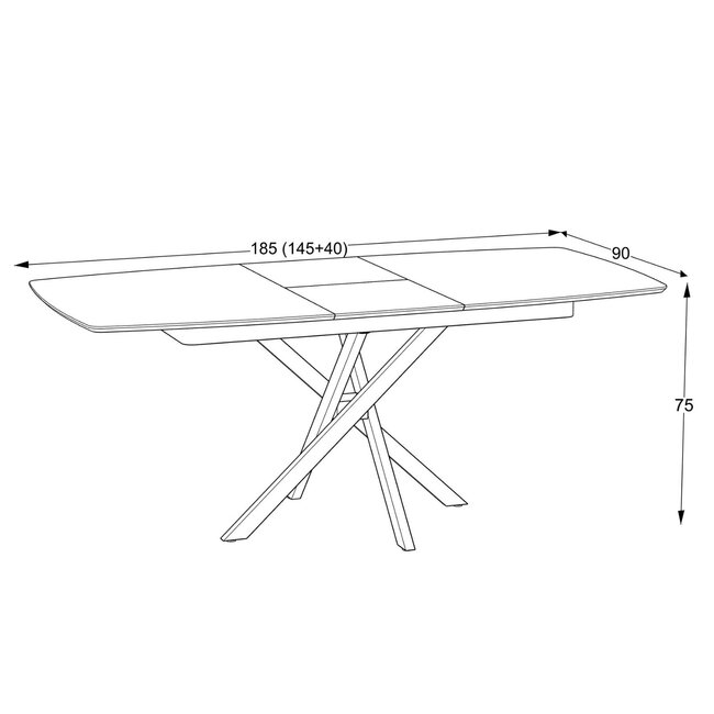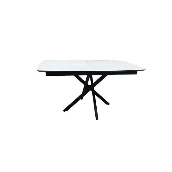 Masă extensibilă Filis, blat MDF alb lucios, bază metalică, 145/185x90x76 cm, Marmo Super Mat