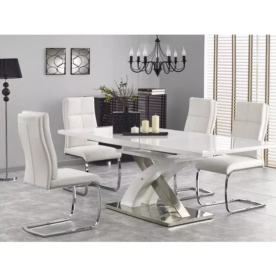 Masă Sandor 2 extensibilă, sticlă securizată, MDF lucios, oțel inoxidabil, 160-220x90x78 cm, alb