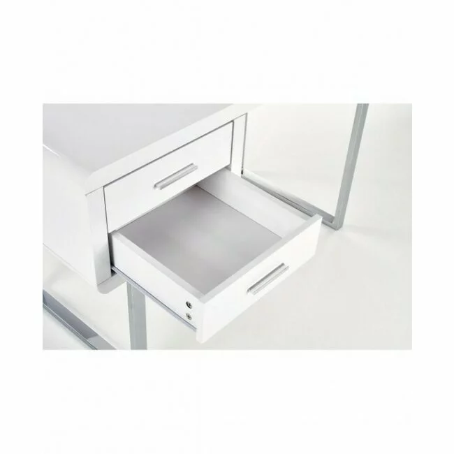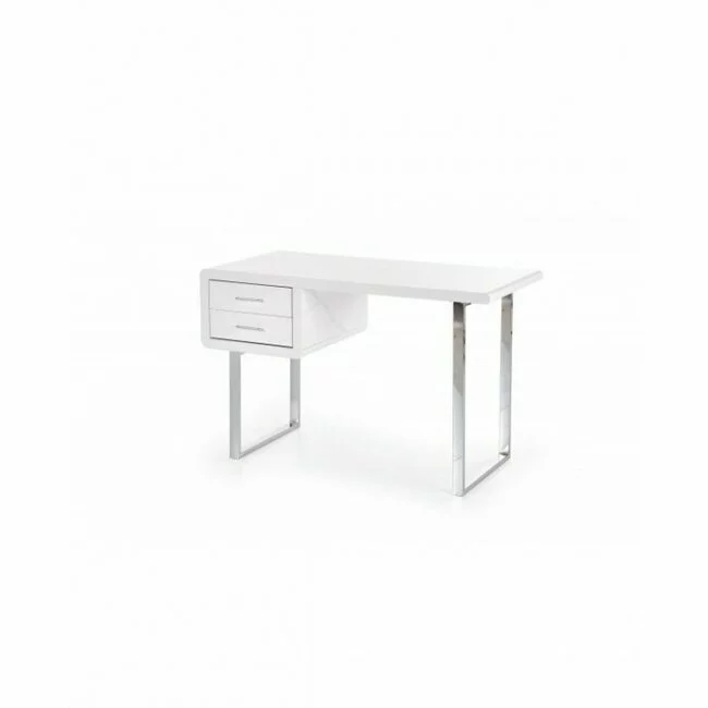 Birou B30 alb 120x55x76 cm din MDF lucios cu structură metalică cromată