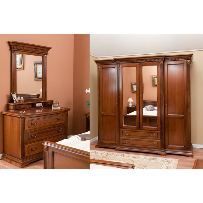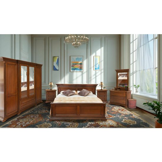 Dormitor Philadelphia din lemn masiv paltin și tei cu intarsii din furnir natural și decor sculptat manual
