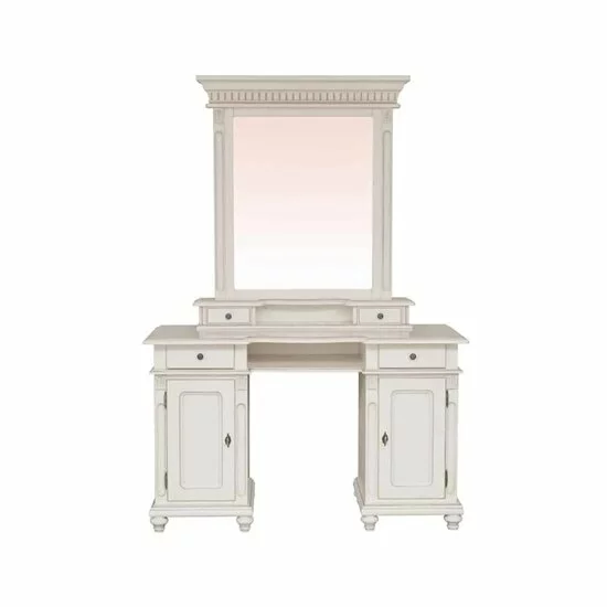 Masă de toaletă Floris, design clasic, lemn masiv și MDF, 134x50x78 cm, crem patinat