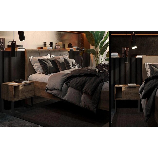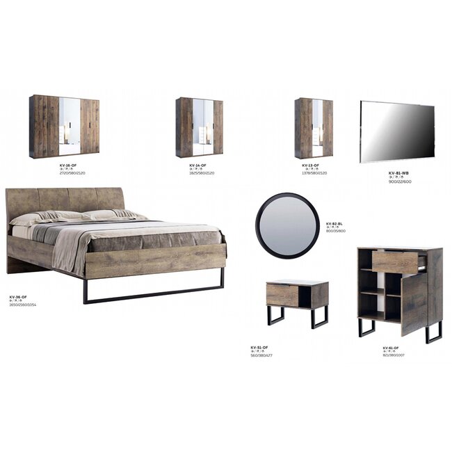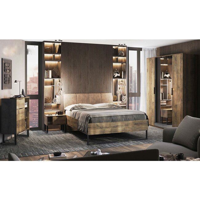 Setul include: Pat 160x200 somiera fixa, dulap 4 usi, 2 noptiere, comoda.