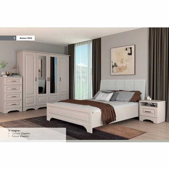 Set dormitor Boston, pat 160x200, dulap 4 uși și 2 noptiere, MDF frezat și PAL melaminat, casmir
