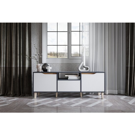 Comodă TV Wood, spațiu media + depozitare, structură PAL melaminat, 160x60x40 cm, personalizabil