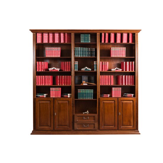Bibliotecă Mara, compartimentare practică, lemn masiv Fag și Tei, panouri furniruite, 242x42x238 cm, finisaj natural