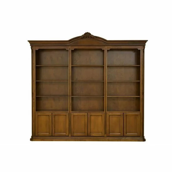 Bibliotecă Sonia, design robust, lemn masiv Paltin și Tei, MDF și panel furniruit, 262x40x244 cm, finisaj nuc
