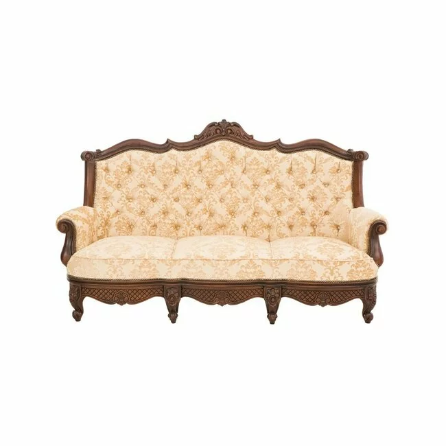 Set hol Milly 3-1-1 din lemn masiv cu sculptură clasică și tapițerie moale, finisaj elegant